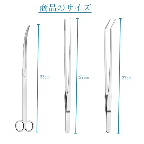 【セット内容】ストレートピンセット(27cm)、カーブピンセット(27cm)、カーブハサミ(25cm)また、持ち運び便利な専用収納バッグも付きます。