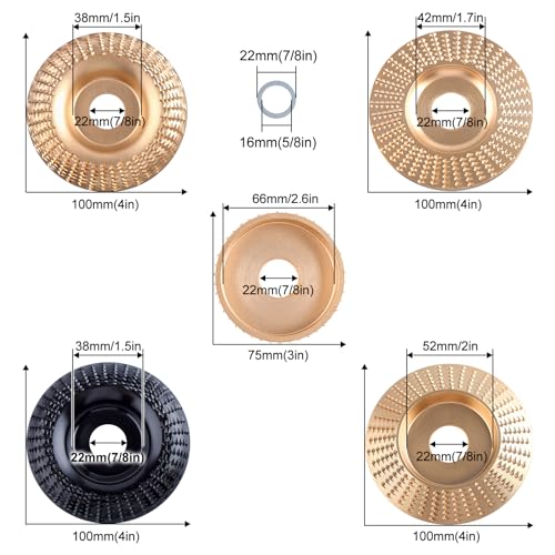 木彫ディスク 木工用成形ホイール ロータリー グラインダー成形ディスク 5個セット 木彫りディスクグラインダーホイール 高硬度 ディスク グラインダー 刃 カップ アーク 平面 砥石セット 木工用アングルグラインダー 研磨ディスク ディスクグラインダー アタッチメント 直径100mm/75mm 穴径22mm 木材研磨 切断 削る 加工 カービング ツール