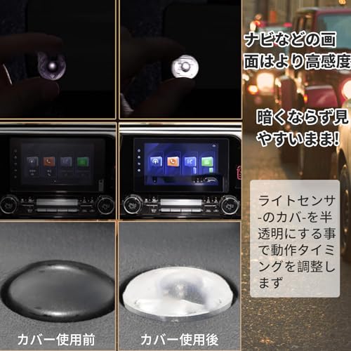 【適合】半透明の透明色とグレーの2つが装着されています。お好みに合わせてお選びください。本製品のライトセンサーカバーは、ほとんどの車に適用されます。汎用性の高い本製品で、愛車のグレードアップをお楽しみください。