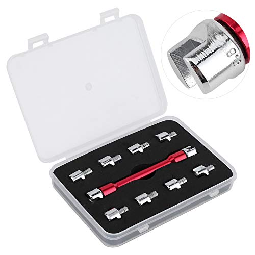 【バイク用スポークレンチ】交換可能なチップは、10サイズのスポークニップルに適しており、非常に便利で実用的です。タイヤ鋼線を調整します。
