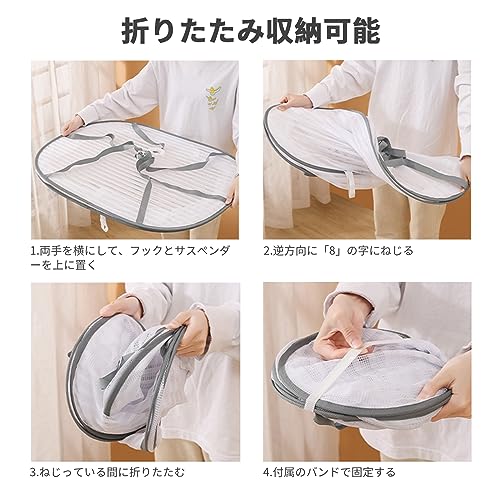 【風を防ぐカバー付き】この干しネットは防風カバーを備えており、トップに設計して防風フックがあり、風が大きい天気でも安心に洗濯物を干すことができます。しかもプライバシー保護機能を備えて、ブラジャー、下着などでも安心に干します。