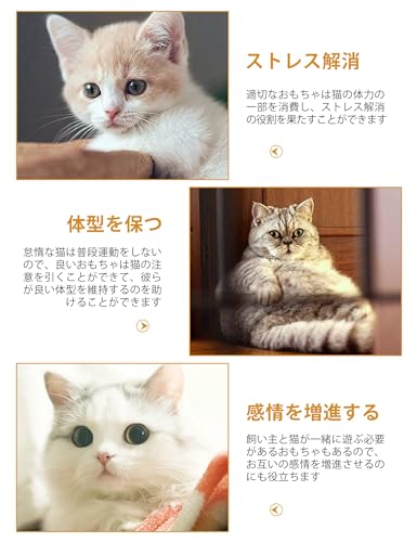 【高品質のマテリアル】自然の羽は非毒性、ソフトとふわふわです。色の明るい、猫の注意を引き付けます。猫に無害な材質を使用しており、健康を維持するのに、最適な猫おもちゃです。