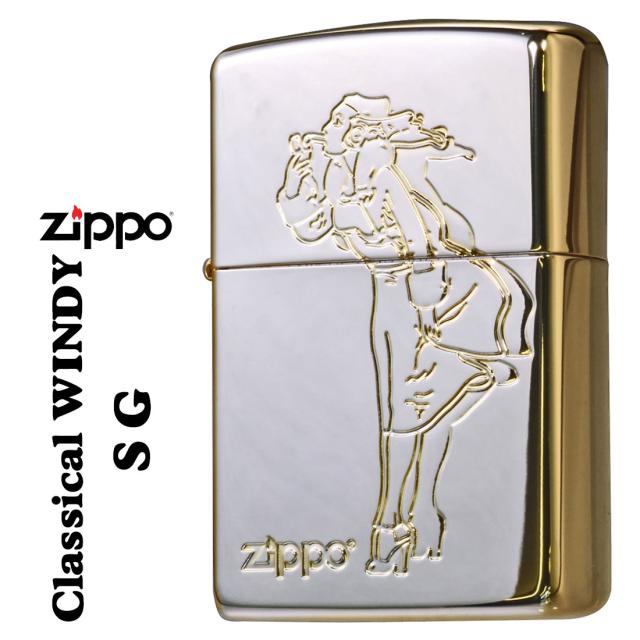 zippo ジッポーライター 人気のWINDY デザイン クラシカル ウィンディ シルバー・ゴールド ミラー CL-WINDY-SG かわいい 彫刻 ZIPPOロゴ入り キャラクター キュート レトロモチーフ メンズ レディース 女性 ギフト プレゼント 送料無料 メール便対応