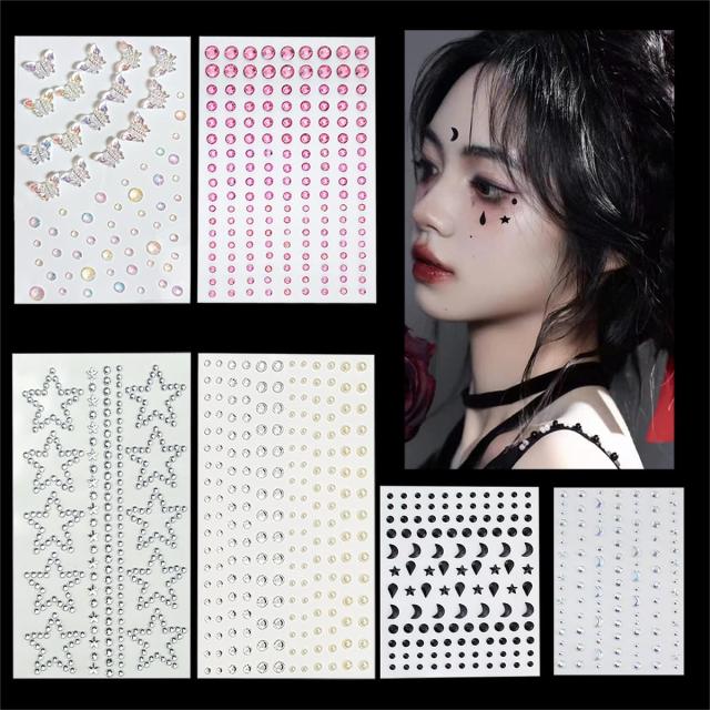 ラインストーン シール 6枚セット フェースステッカー 3D 貼り付け可能 ダイヤモンド デコパーツ キラキラ 顔面デコ 携帯電話装飾 DIY用