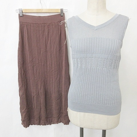 【中古】未使用品 ジーユー GU ニット セーター スカート 2枚セット ロング ブルー グレー 茶 ブラウン S レディース