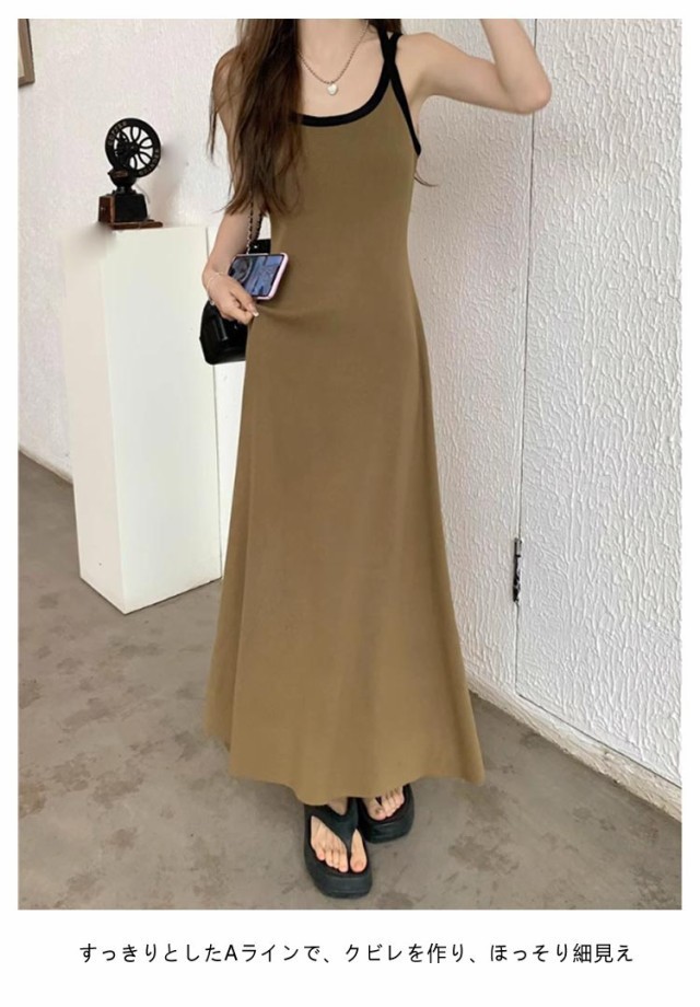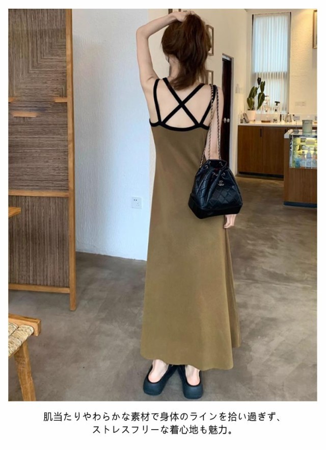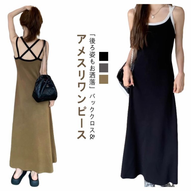 バッククロス アメリカンスリーブ ワンピース レディース 春 夏 秋 ワンピ タンクトップ キャミソール ワンピース キャミワンピ ロング ノースリーブ Aライン ダブルストラップ ロングワンピース タンクワンピ ルームワンピース セクシー