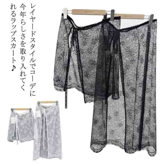巻きスカート ショート丈 総レース 重ね着 透け感 大人可愛い 花柄 ロング丈 レース巻きスカート レーススカート 巻きスカート 付け裾 チュール シースルー カラー 体型カバー 薄手 ラップスカート ズボンの上 ボトムス ふんわり