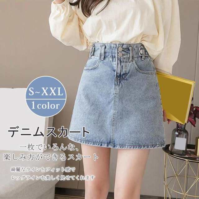 デニムスカート ミニ丈 台型スカート ハイウエスト ゴムウエスト ミニスカート 台形ミニスカート Aライン カジュアル 可愛い おしゃれ シンプル 通勤 通学