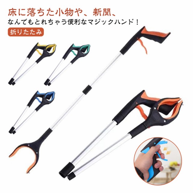 万能ロングハンド お助けハンド 83cm 介護 つかみ棒 マジックハンド ゴミ拾いトング 軽量 折りたたみ お助けハンド 滑り止め 磁石付き マグネット 入院 グッズ 便利 介護用品 お助け用ハンド ブルー グリーン オレンジ レッド
