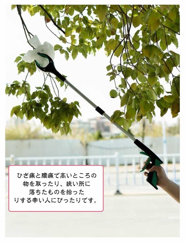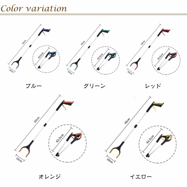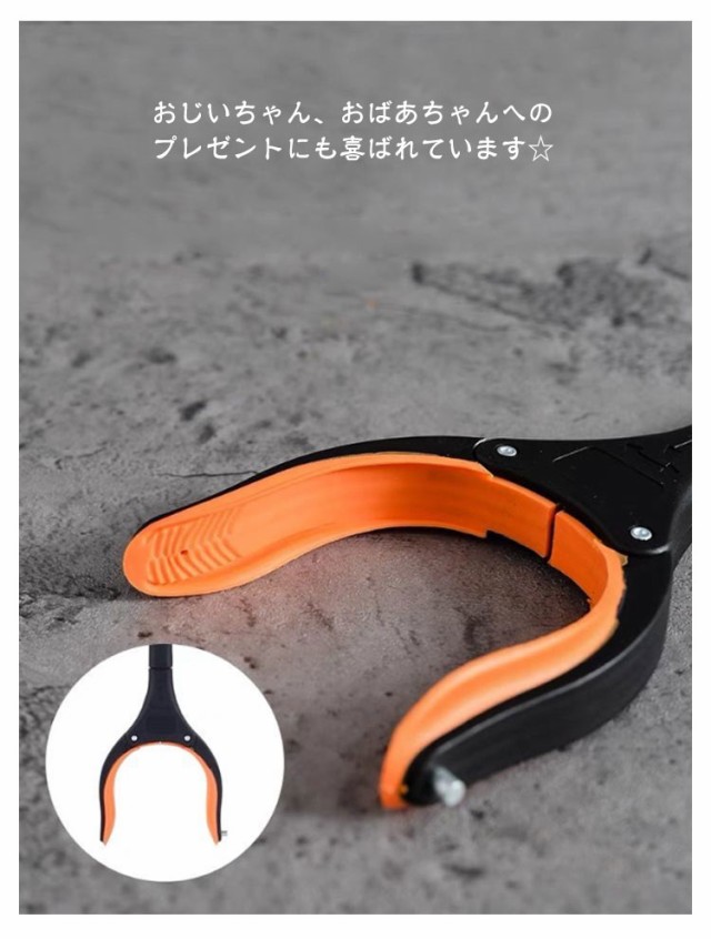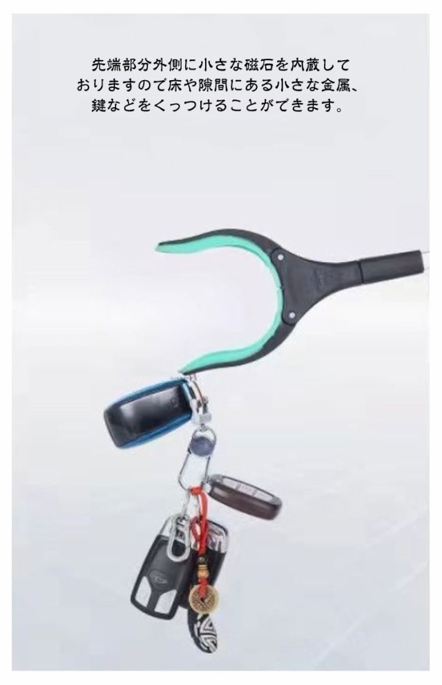| 床に落ちた小物や、新聞、なんでもとれちゃう便利なマジックハンド! ゴミや缶なと地面にあるものを簡単に楽に拾い上げます。 先端部分外側に小さな磁石を内蔵しておりますので床や隙間にある小さな金属、鍵などをくっつけることができます。 83cmロングサイズ、折りたたみも可能で持ち運びも便利です。 ひざ痛と腰痛で高いところの物を取ったり、狭い所に落ちたものを拾ったりする辛い人にぴったりです。 おじいちゃん、おばあちゃんへのプレゼントにも喜ばれています☆ | |