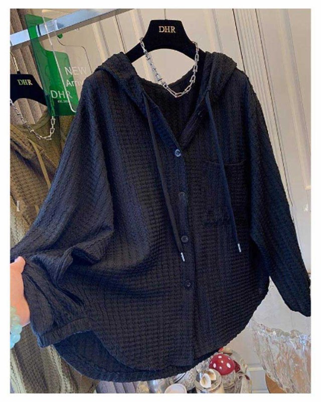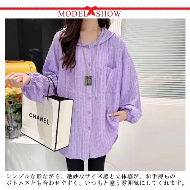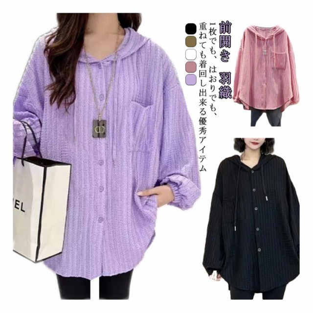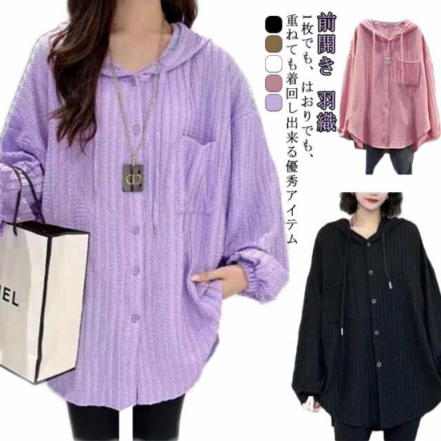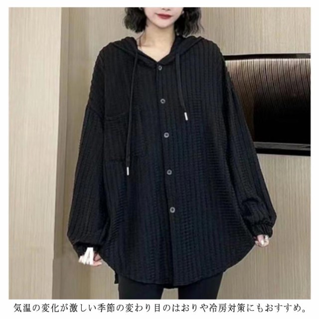 フード付きシャツ シャツ フード付き 前開き パーカー ビッグシルエット 大きいサイズ カジュアル 大きいサイズ 長袖 シャツ 無地 シンプル ゆったり レディース 通勤 レイヤード風 羽織 パーカー OL シンプル 体型カバー