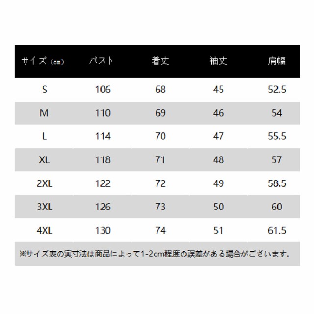 | サイズ | S M L XL 2XL 3XL 4XL |
