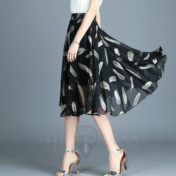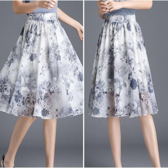 スカート ウエストゴム ひざ丈スカート 大人シフォン 花柄 スカート ボトムス スカート 夏 海 ナチュラル ビーチ リゾート ハワイ