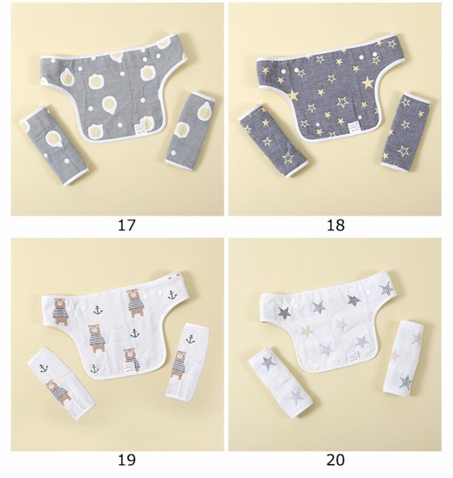 | 綿のよだれパッド(1組2枚)と汗取りパッドの3点セットです! 取り外ししやすいスナップボタンで、 ママも赤ちゃんも快適に過ごせるようになるアイテムです。 綿の6重ガーゼ素材です。 6重構造なので適度な厚みがあり、吸水性に優れています。 肌触りもとてもソフトです。 男の子も女の子も使える。 出産祝い、お誕生日祝い、お礼のプレゼントにも最適です! 多用途!ホールドロープの他、ベビーカーやチャイルドシートの腰ベルト、運動時の鎖骨を守るシートベルトカバーとして、様々なシーンでご使用いただけます。 | |