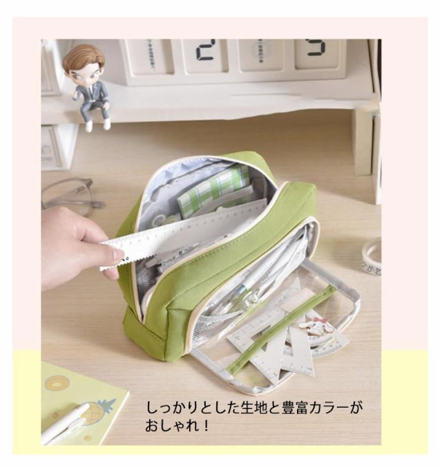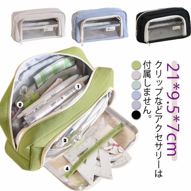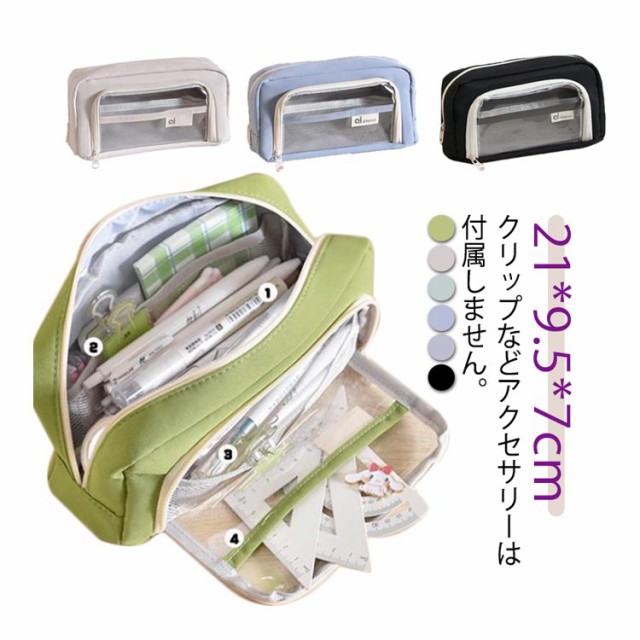 | ※クリップなどアクセサリーは付属しません。 外側の透明ポケット部分にまでたっぷり収納できる、大容量ペンケース! トレンドの韓国っぽさたっぷりで可愛いペンケース しっかりとした生地と豊富カラーがおしゃれ! ペンなどの文房具やメイクブラシなど収納できます。 | |