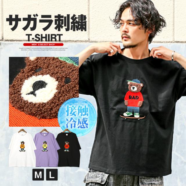 Tシャツ 半袖 メンズ レディース 半袖Tシャツ トップス 接触冷感 クール 涼しい ひんやり 刺繍【くまサガラ刺繍半袖Tシャツ】 aa-3601
