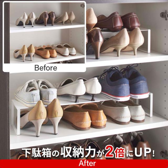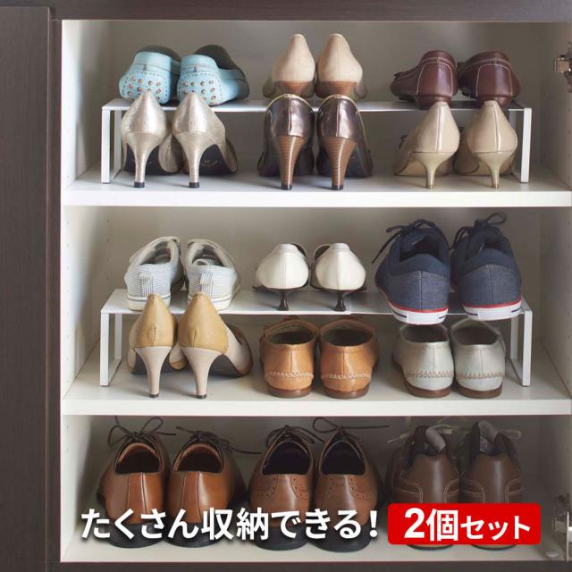 下駄箱の中の収納力を倍にする伸縮シューズラック。2個セット。