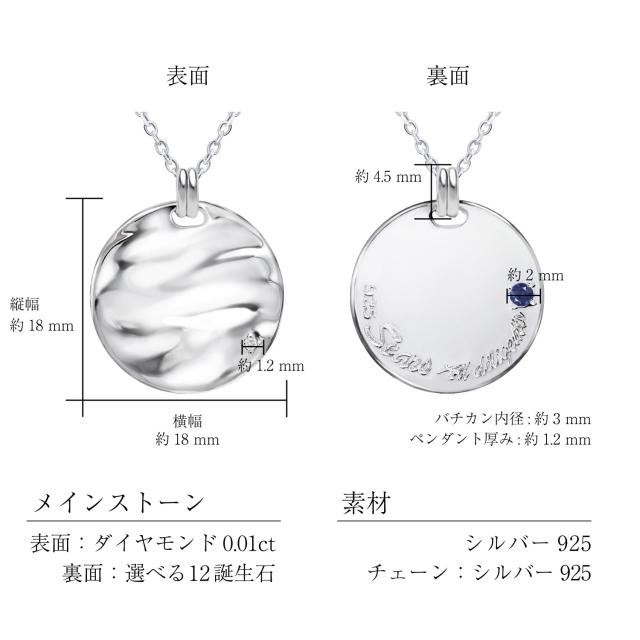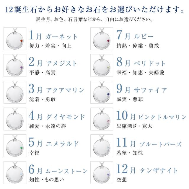 ■裏面 12誕生石:直径約2mm×1石(ガーネット/アメジスト/アクアマリン/ダイヤモンド/エメラルド/ムーンストーン/ルビー/ペリドット/サファイア/ピンクトルマリン/ブルートパーズ/タンザナイト)