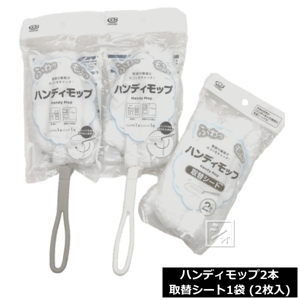 オカザキ ハンディモップ 2本セット 取替シート2枚付 折りたたみ 使い捨てタイプ 【メール便送料無料】