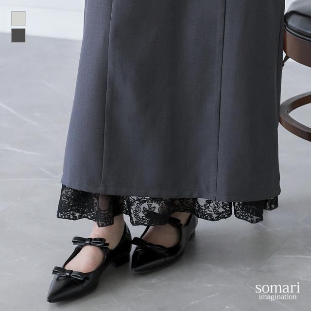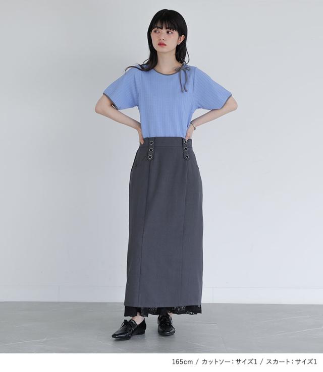 【送料無料】『パイピングリボンカットソー×レースペチ付きナロースカートコーデ2点SET』【メール便不可】【20】[2点コーデセット 2025 レディース カットソー トップス Tシャツ 半袖 ナロースカート ロング]