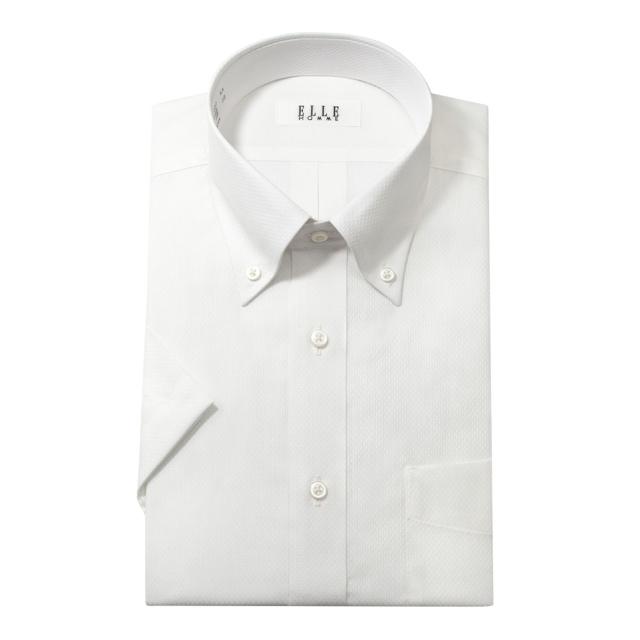 ELLE HOMME 半袖 ワイシャツ メンズ 夏 形態安定 涼感素材 白 ホワイト ドビー ボタン【ZEN615-200】