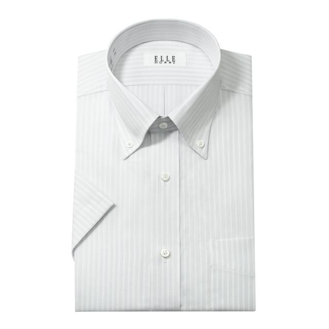 ELLE HOMME 半袖 ワイシャツ メンズ 夏 形態安定 涼感素材 グレー ストライプ ボタンダ【ZEN615-480】