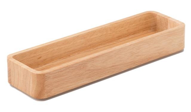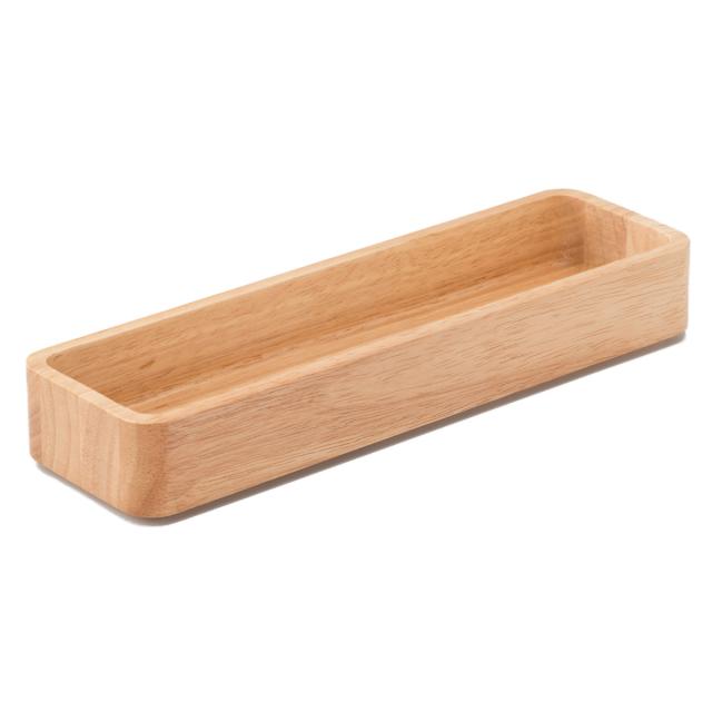 どんな場所にも馴染みやすく、使い勝手が良いカトラリーケースです。角が無いフォルムと天然木の木目が、インテリアに温もりを添えます。スタッキングができてスッキリまとまるので、カトラリーはもちろん、文具や小物収納にもピッタリです。