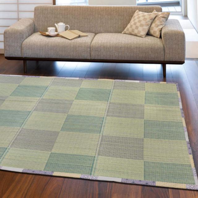 和モダンな印象に彩る唐草市松模様の「い草」ラグ