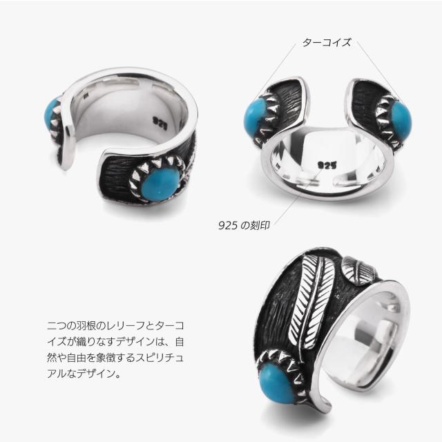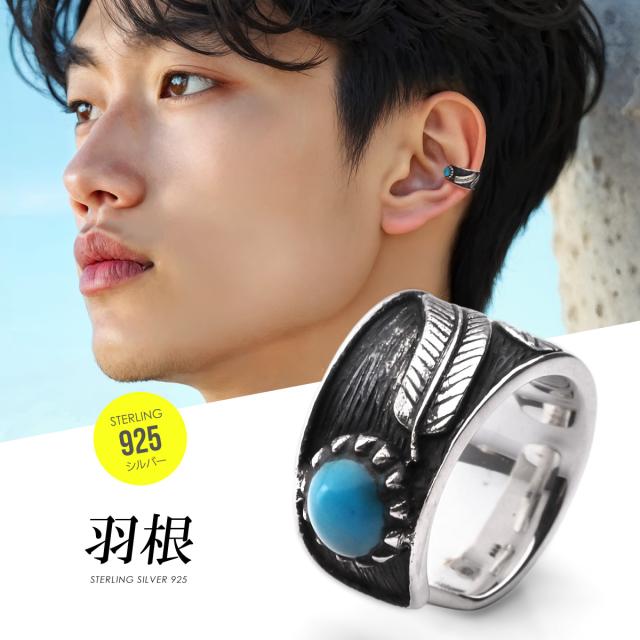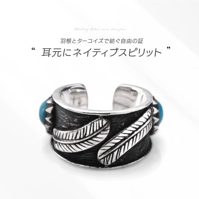 イヤーカフ シルバー925 メンズ 羽根 アクセサリー 羽根 ターコイズ ネイティブ イヤーカフ 片耳用 pi0626