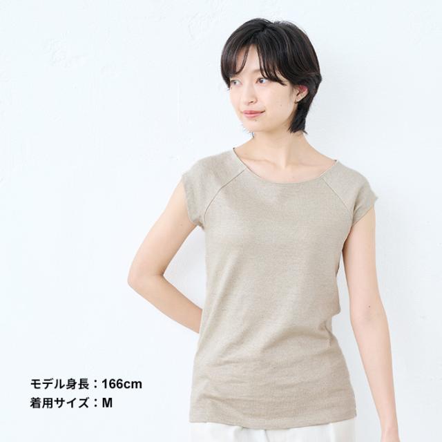 プレミアムリネンストレッチ 汗取りフレンチスリーブTシャツ