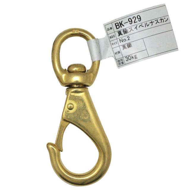 【メール便可】WAKI 和気産業 真鍮スイベルナスカン NO.2 94mm BK-929