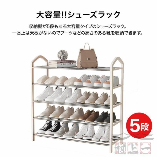 シューズラック スリム 省 スペース 下駄箱 5段 靴箱 狭い 玄関 大容量 シューズケース 靴収納 収納家具