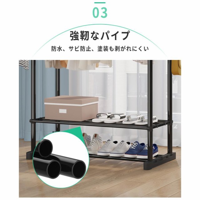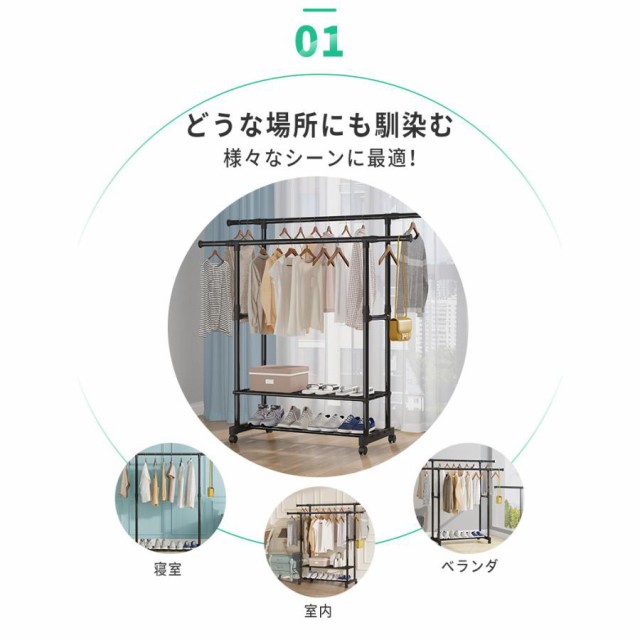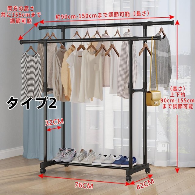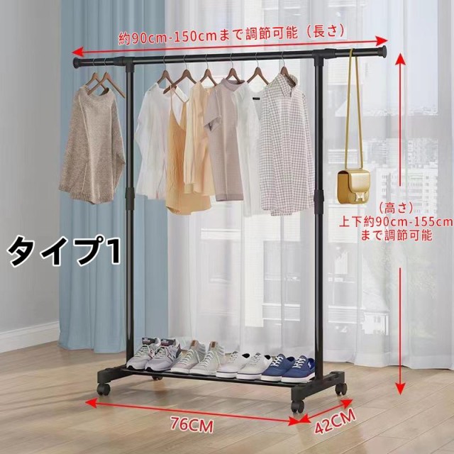 ハンガーラック 頑丈 伸縮 パイプ 衣類収納 洋服収納 キャスター付き コートハンガー コンパクト収納 部屋干し 梅雨対策 送料無料