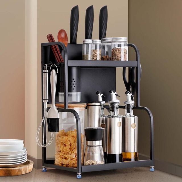 調味料ラック 二段式 ステンレス製 調味料棚 台所収納ラック ステンレス調味料置物架 調味料収納ラック キッチンラック 調味料収納 台所収納 調味料入れ 防汚 防油