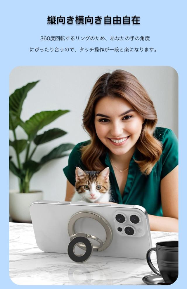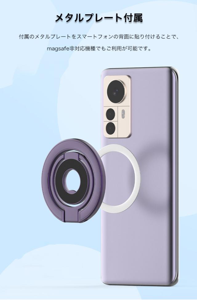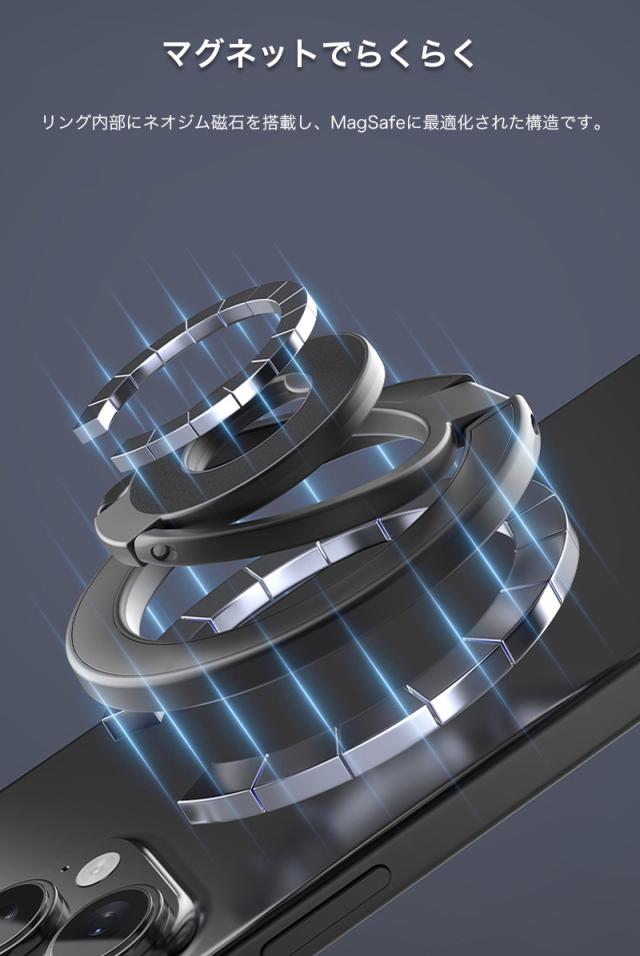 スマホリング iPhone MagSafe スマホ 携帯 ホルダー リング型 スタンド メタル 落下防止 360度回転 角度調整 落下防止 極薄