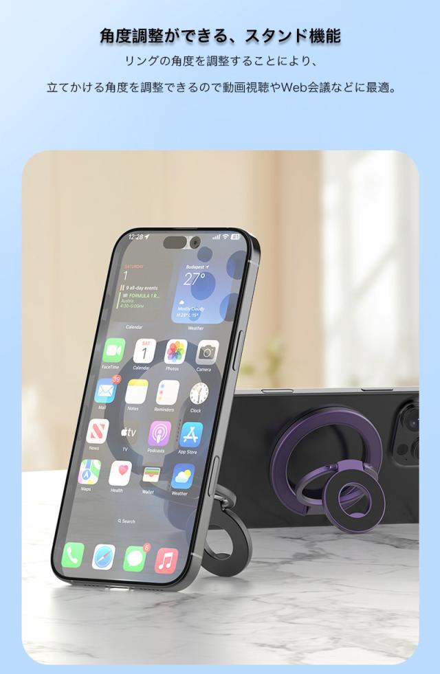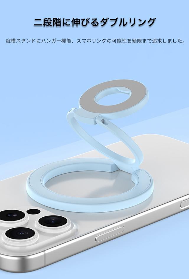 Magsafeリング スマホスタンド ホールドリング マグセーフリング スマホホルダー マグネット カーマウント対応 ダブルリング 携帯 リングスタンド 指リング