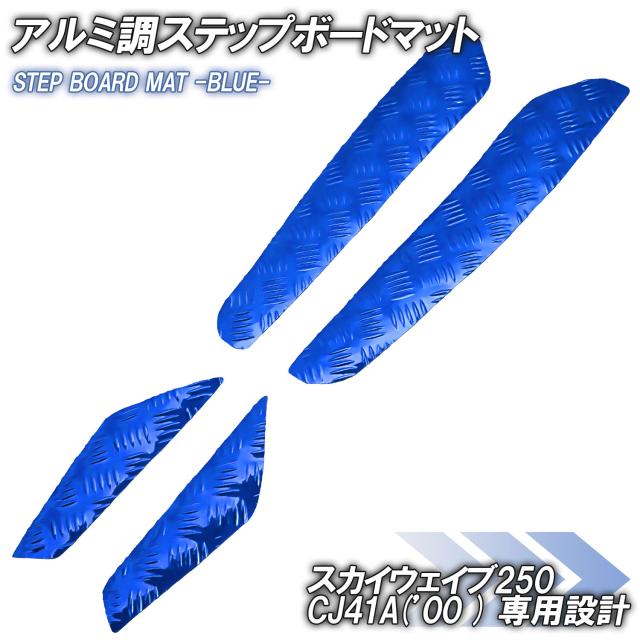 アルミ調 ステップマット スズキ スカイウェイブ250 CJ41A 2000年 ブルー メッキ バイク ゴムマット ステップボード カスタム 交換 パーツ 部品 補修 防水