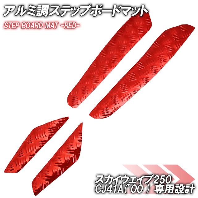 アルミ調 ステップマット スズキ スカイウェイブ250 CJ41A 2000年 レッド メッキ バイク ゴムマット ステップボード カスタム 交換 パーツ 部品 補修 防水