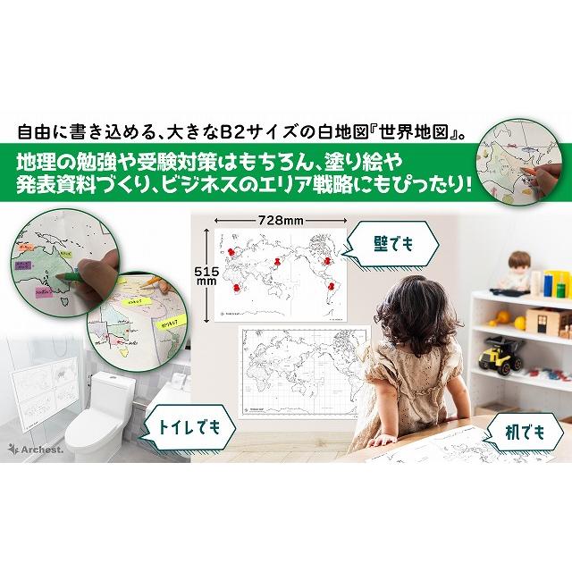 自由に書き込める、大きなB2サイズの世界地図ポスター。白地図だからこそ、自分だけの学びや表現が広がります。地理の勉強や受験対策はもちろん、塗り絵や発表資料づくり、ビジネスのエリア戦略にもぴったりです。