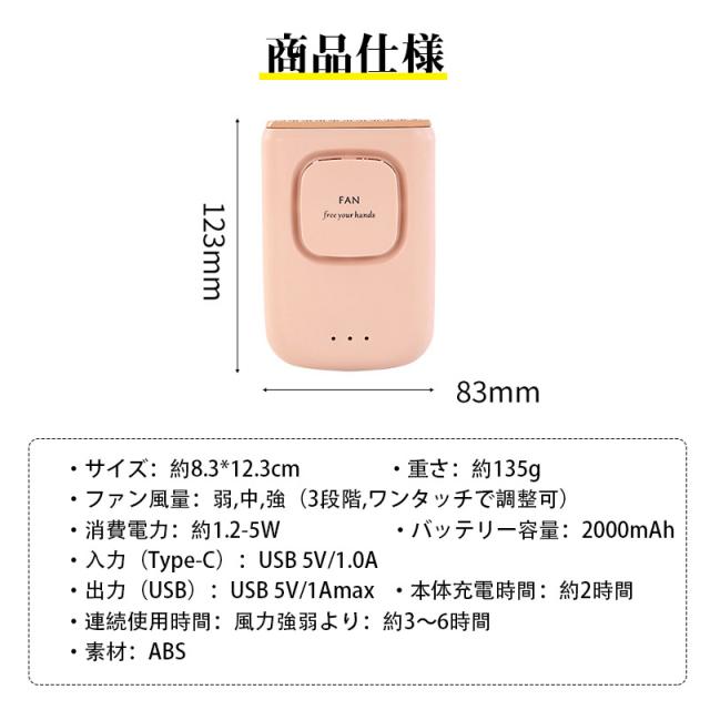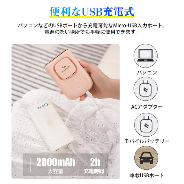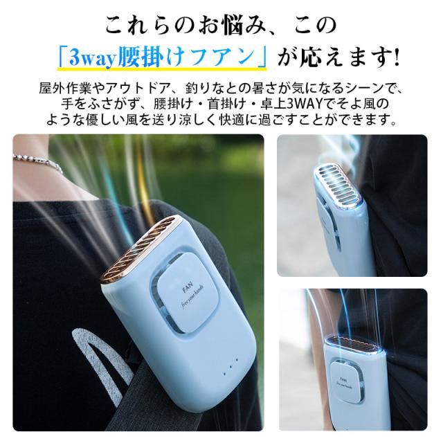 ファン 扇風機 腰掛けファン ベルトファン USB充電式 首掛け 軽量 小型扇風機 ミニ扇風機 卓上 携帯扇風機 熱中症対策 暑さ対策 三段階調節