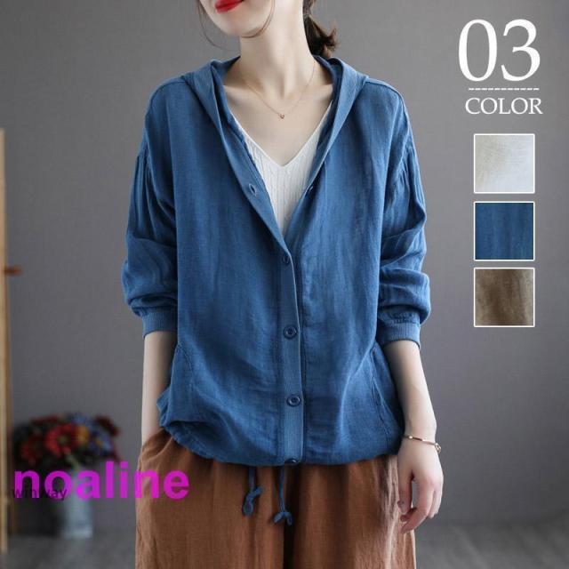 パーカー レディース 春 夏 秋 リネン フード付き 長袖 カーディガン 綿麻 トップス 着心地 ゆったり 体型カバー 涼しい シップパーカー 大きいサイズ アウター