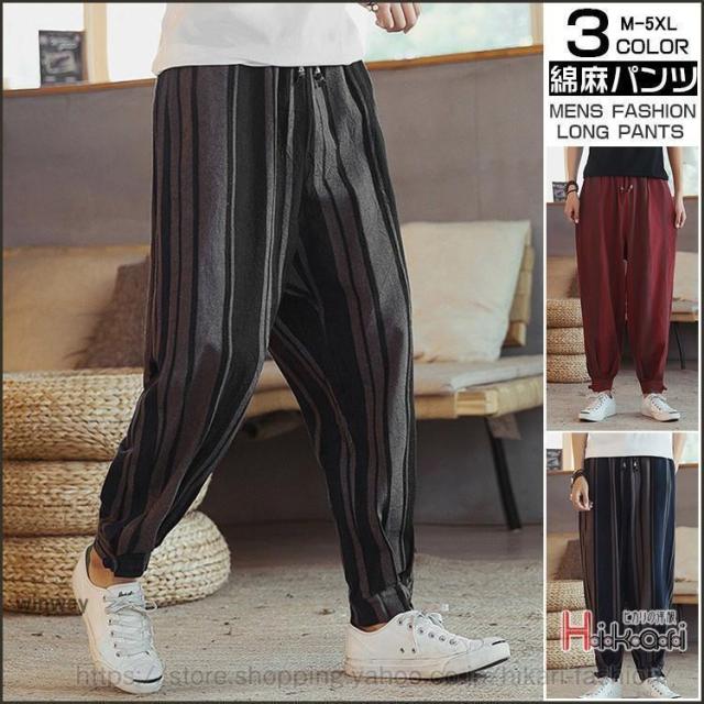 ストライプパンツ テーパードパンツ メンズ 綿麻パンツ チャイナ風 イージーパンツ ボトムス ストライプ柄 父の日