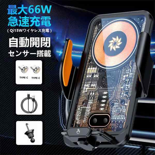 スマホホルダー 車 車載ホルダー スマホホルダー スマホスタンド 自動開閉 ワイヤレス充電 Qi 自動開閉 日本語取扱説明書付き