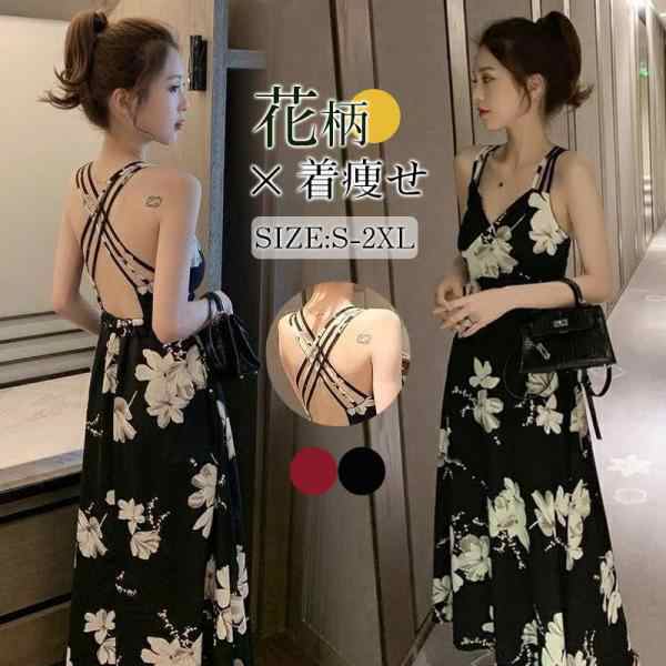 キャミワンピース レディース 夏 背中を見せる キャミソールワンピース ロングワンピース マキシワンピース 花柄 きれいめ 春夏 ビーチ リゾート