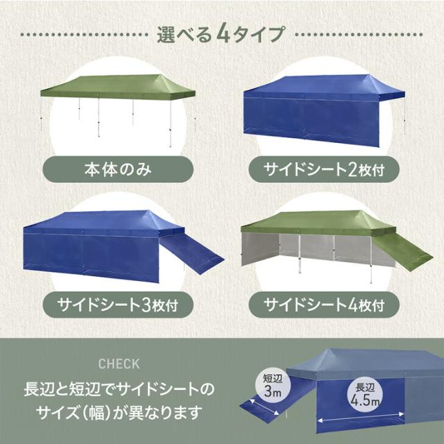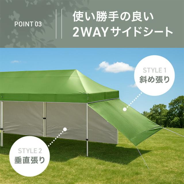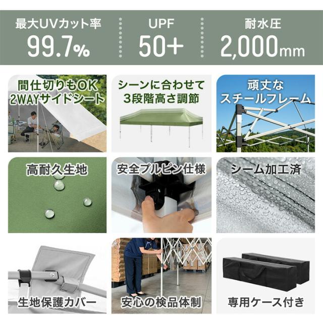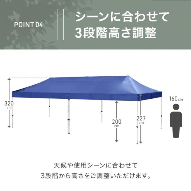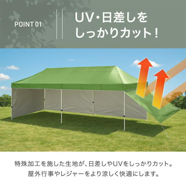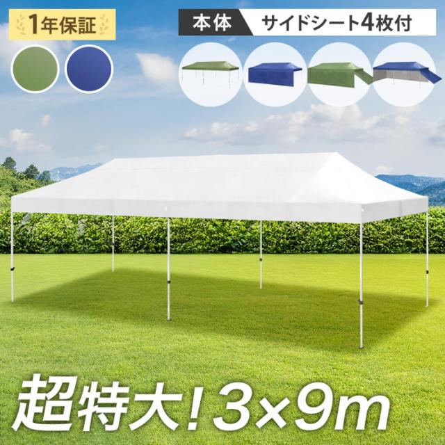 超大型 ワンタッチタープ 3×9m 収納バッグ タープ テント タープテント ワンタッチテント イベントテント ワンタッチ 日よけ 遮熱 耐水 頑丈 高さ調節 特大