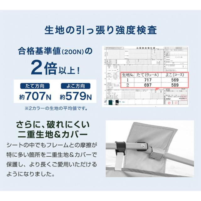 ※タープテントは構造上、風速5m以上の風の吹く場所での使用を行った場合、転倒や破損の原因となります。風がある場合は、高さ調整機能を用いて低く張る・撤収するなどの対応をお願い致します。