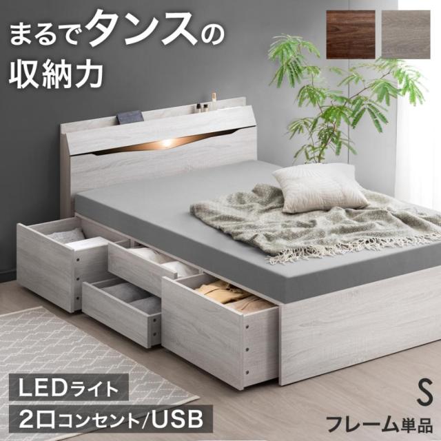 まるでタンスの収納力 大容量 ベッド シングル LED ライト付き 収納付き 収納ベッド シングルベッド チェストベッド ベッド 引き出し付き ベッドフレーム 木製 USB コンセント 【超大型】【後払/時間指定NG】