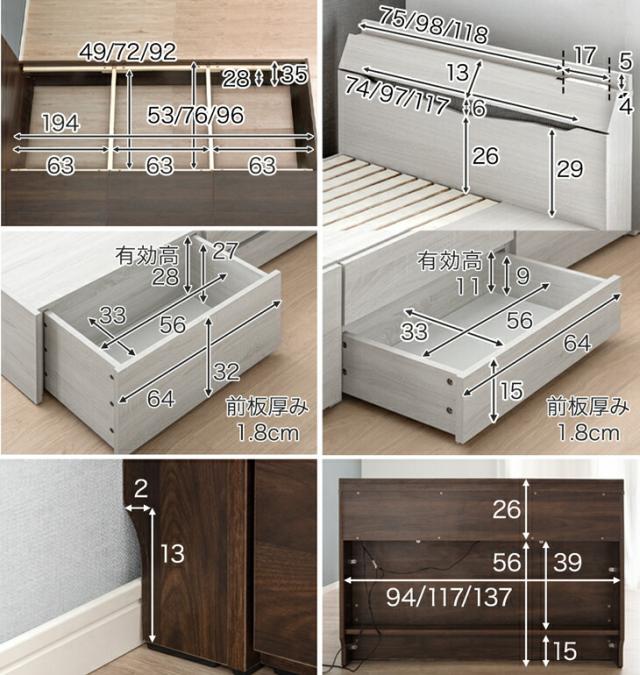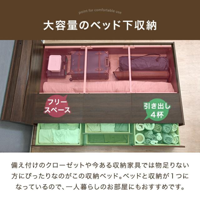 大容量 引き出し付きベッド シングル チェストベッド 収納 収納ベット すのこベット ベッドフレーム ベッド ベット フレーム 宮 宮付き 宮棚 宮棚付 頑丈 木製 北欧