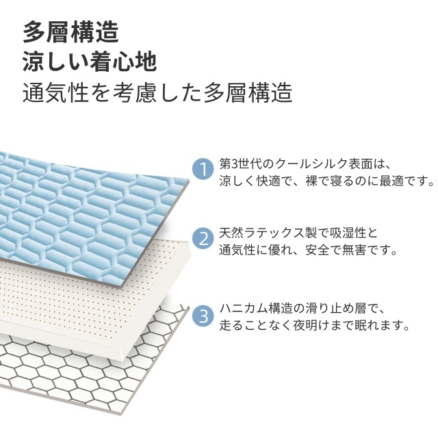 素材 ◆製品生地:クールシルク生地 / ◆夏用マット中材:ラテックス
