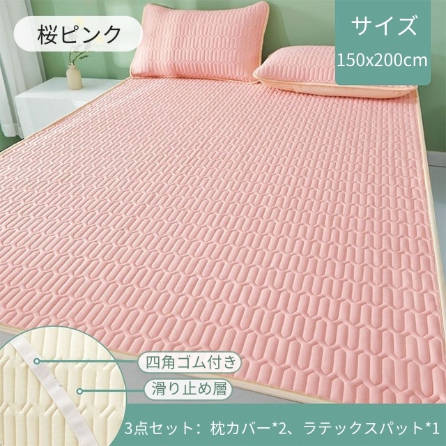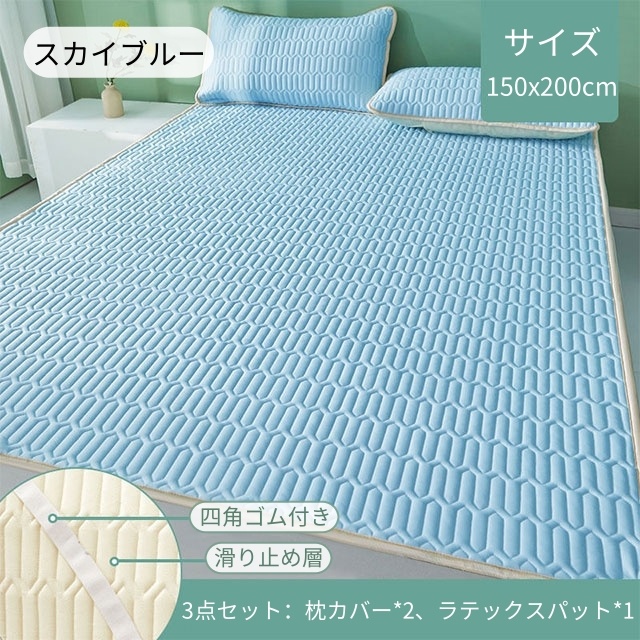 ラテックス 枕と冷感敷きパッドセット ボックスシーツ 天然ラテックスパッド 接触冷感 涼し 夏 冷房 ベッドパッド 敷きパッド シングル セミダブル ダブル 折りたたみ 厚手 枕カバー 洗える 防ダニ マットレス